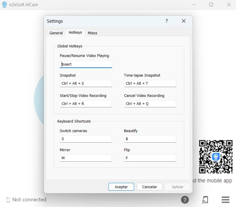 El proceso de instalación es muy sencillo. Es necesario que tanto el teléfono móvil como el ordenador estén conectados a la misma red. La conexión automática de ambos dispositivos le permitirá acceder a los controles básicos de la cámara, como grabar vídeos o tomar fotos con su teléfono. En la esquina superior derecha, encontrará botones para acceder rápidamente a diversas funciones. Aquí podrá cambiar la orientación del vídeo, la velocidad de fotogramas, el tamaño y la calidad de audio/vídeo. Puede reproducir vídeos desde la carpeta de vídeos de su dispositivo. Ofrece múltiples funciones, tales como: